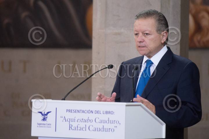 Arturo Zaldívar, ministro presidente del Alto Tribunal y del Consejo de la Judicatura Federal (CJF), durante la presentación del libro “Aquí estuvo Cauduro, Rafael Cauduro” que recopila la trayectoria del artista mexicano.