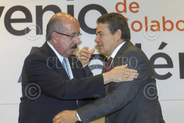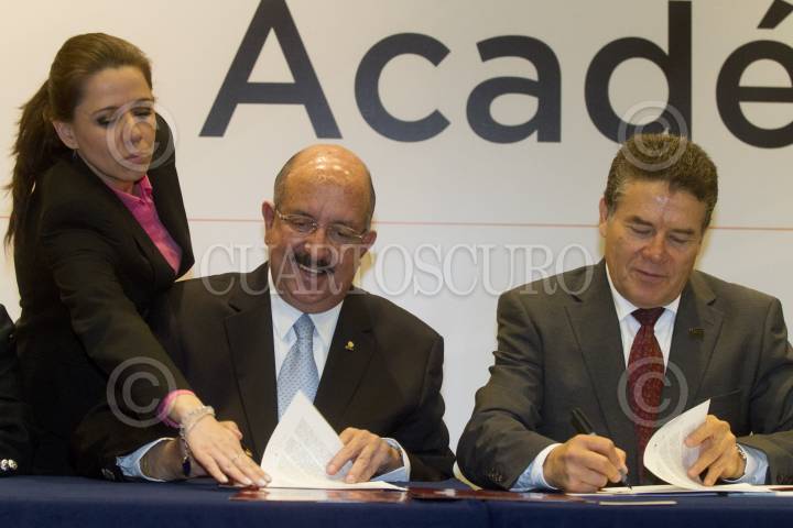 MÉXICO, D.F., 12JUNIO2013.- Rafael López Castañares, titular de ANUIES, y Juan Díaz De La Torre, secretario General del SNTE, firmaron el Primer Convenio General de Colaboración Académica entre esas instituciones. FOTO: JUAN PABLO ZAMORA /CUARTOSCURO.COM