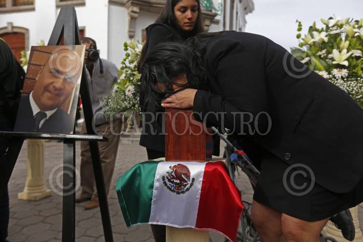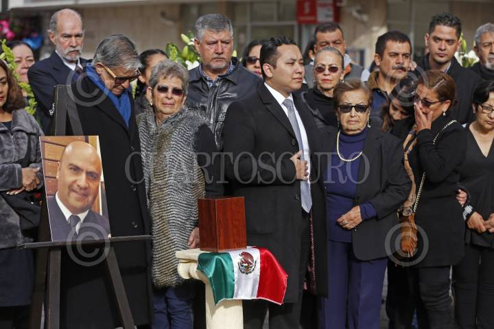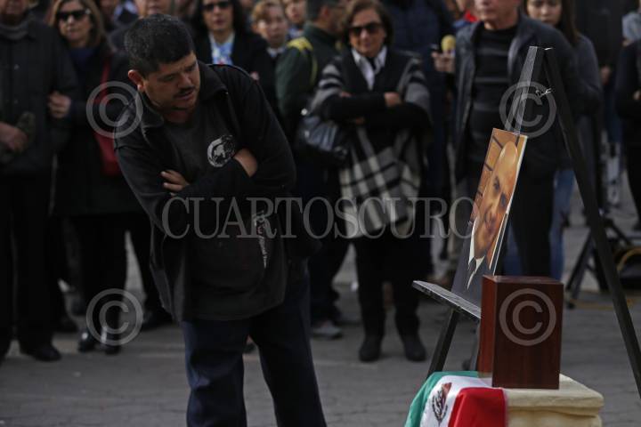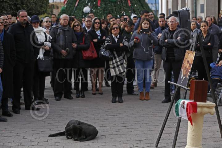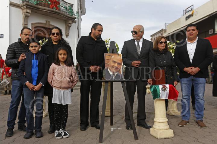AMECA, JALISCO, 28DICIEMBRE2018.- Marco Antonio Tavera quien se desempeñara como Piloto aviador y falleciera el pasado 24 del mes en curso en un accidente aéreo en donde también perdieron la vida la Gobernadora de Puebla Martha Erika Alonso y su esposo el ex Gobernador y Senador Rafael Moreno Valle, fue homenajeado por familiares y amigos en la explanada de la Plaza principal de Ameca. FOTO: FERNANDO CARRANZA GARCIA / CUARTOSCURO.COM