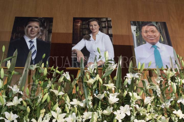 CIUDAD DE MÉXICO, 07ENERO2019.- El PAN realizó un homenaje póstumo a Martha Erika Alonso, gobernadora de Puebla; Rafael Moreno Valle, senador de la República, y Héctor Baltazar Mendoza, colaborador de Rafael Moreno Valle, quienes murieron en un accidente aéreo el pasado 24 de diciembre, asistieron los padres de Moreno Valle, Marko Cortés, Héctor Larios Gustavo Madero y Ricardo Anaya. FOTO: MOISÉS PABLO /CUARTOSCURO.COM
