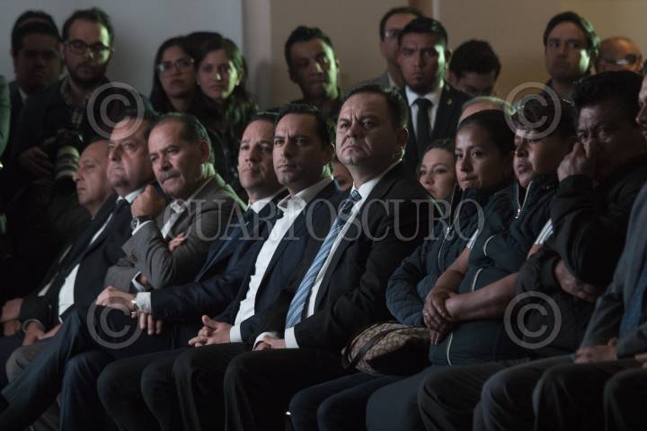 CIUDAD DE MÉXICO, 07ENERO2019.- Jesús Rodríguez Almeida, secretario general de Puebla y encargado de despacho del gobierno de Puebla, asistió al homenaje póstumo que se le brindó a Martha Erika Alonso, gobernadora de Puebla; Rafael Moreno Valle, senador de la República, y Héctor Baltazar Mendoza, colaborador de Rafael Moreno Valle, quienes murieron en un accidente aéreo el pasado 24 de diciembre, la ceremonia se realizó en la sede nacional blanquiazul. FOTO: MOISÉS PABLO /CUARTOSCURO.COM