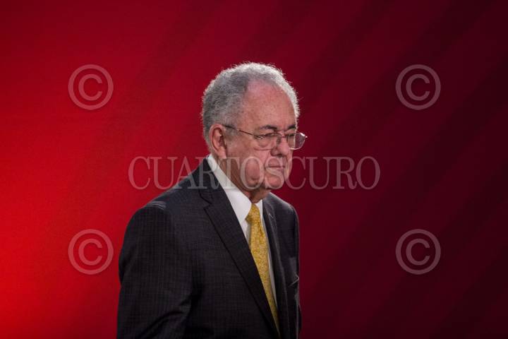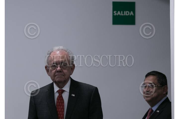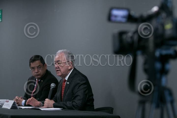 CIUDAD DE MÉXICO, 28FEBRERO2019.- Javier Jiménez Espriú, secretario de Comunicaciones y Transportes, dio detalles de como han avanzado las investigaciones respecto al accidente del pasado 24 de diciembre de 2018, donde murieron la gobernadora de Puebla, Martha Erika Alonso y su esposo el senador Rafael Moreno Valle, esto tras darse a conocer que los audios que integran la investigación fueron reservados hasta dentro de cinco años. Por cuestiones de agenda, el secretario se retiró por lo que el resto de la presentación fue por parte de Carlos Morán Moguel, subsecretario de Transporte. FOTO: GALO CAÑAS /CUARTOSCURO.COM