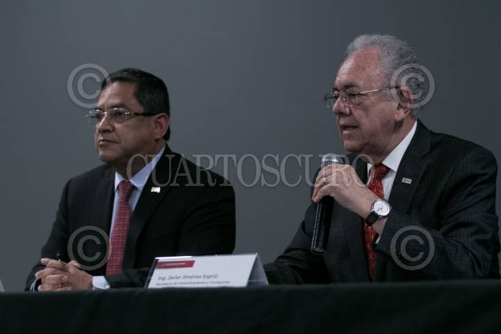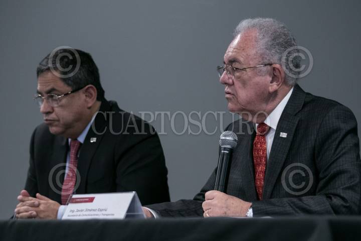 Javier Jiménez Espriú, secretario de Comunicaciones y Transportes, durante la conferencia.