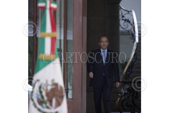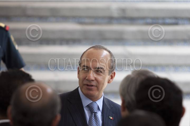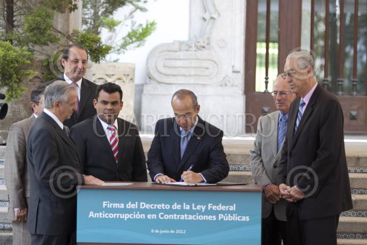 MÉXICO, D.F., 08JUNIO2012.- Felipe Calderón Hinojosa, Presidente de México, encabezó la firma de decreto de la "Ley Anticorrupción en Contrataciones Públicas", en las escalinatas de la residencia oficial de Los Pinos. FOTO: MOISÉS PABLO /CUARTOSCURO.COM
