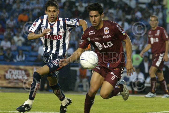 MONTERREY, NUEVO LEÓN 28ENERO2006.- Pablo Serafín (Monterrey) Rafel Màrquez (Morelia) pelea el balón con en el partido de la jornada 2 del torneo de clausura 2006 en el que Monterrey venció a monarcas Morelia 1-0 con gol del colombiano Hugo Rodallega. FOTO: Roberto Martínez/CUARTOSCURO.COM