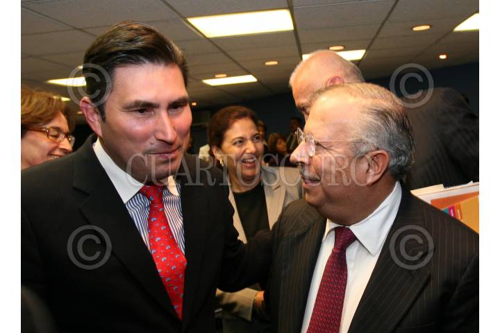 ZACATECAS, ZACATECAS., 07SEPTIEMBRE2007. El lic. Rafael Flores Medoza, secretario de turismo del gobierno del estado de Zacatecas y el Lic. Jaime Robledo Martínez, encargado del centro de documentación de la fototeca del estado de Zacatecas en la presentación de la convocatoria del primer concurso estatal de fotografia turistica 2007. FOTO: CARLOS SEGURA/CUARTOSCURO.COM