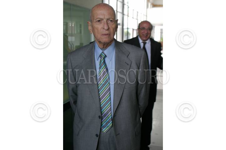 MÉXICO, D.F., 11ENERO2010.- Alberto Saba Raffoul, padre del empresario, Miguel Saba quién perdió la vida ayer por la noche en un accidente en helicoptero, llegó al lugar de los hechos, impidiendole el paso policias que resguardaban la zona. FOTO: LUIS CARBAYO/CUARTOSCURO.COM