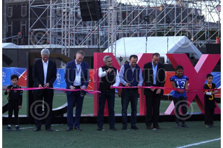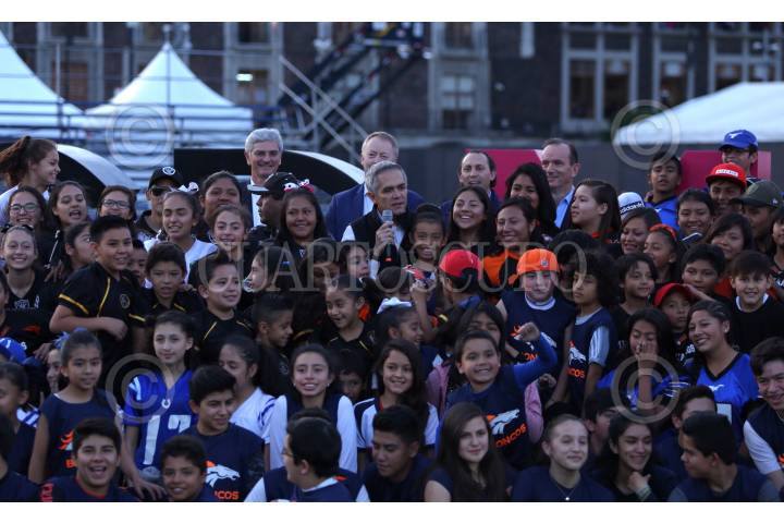 CIUDAD DE MÉXICO, 17NOVIEMBRE2016.- Miguel Ángel Mancera, jefe de gobierno de la Ciudad de México, inauguró el NFL FanFest Zócalo, como parte de las actividades que forman parte del juego en el estadio Azteca el próximo domingo entre los Raiders y Patriots. FOTO: ADOLFO VLADIMIR /CUARTOSCURO.COM