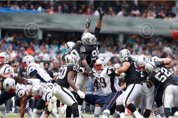 CIUDAD DE MÉXICO, 19NOVIEMBRE2017.- Raiders de Oakland y Patriotas de Nueva Inglaterra, disputaron un partido de temporada regular de la NFL, en el Estadio Azteca, en donde los "Pats" se llevaron la victoria por 33-8. FOTO: GABINO ACEVEDO / CUARTOSCURO.COM