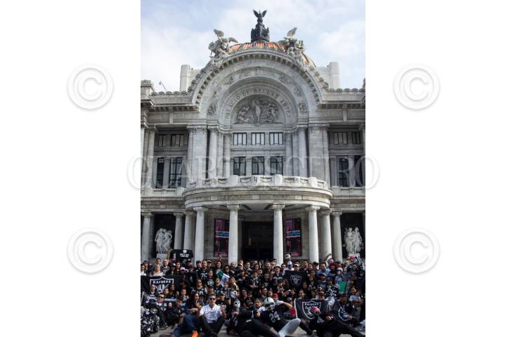 CIUDAD DE MÉXICO, 09SEPTIEMBRE2018.- Fanáticos de los Raiders de Oakland se tomaron una fotografía en el Palacio de Bellas Artes. Esto con motivo del inicio de temporada de la Liga Nacional de Fútbol Americano (NFL por sus siglas en inglés). FOTO: GALO CAÑAS /CUARTOSCURO.COM
