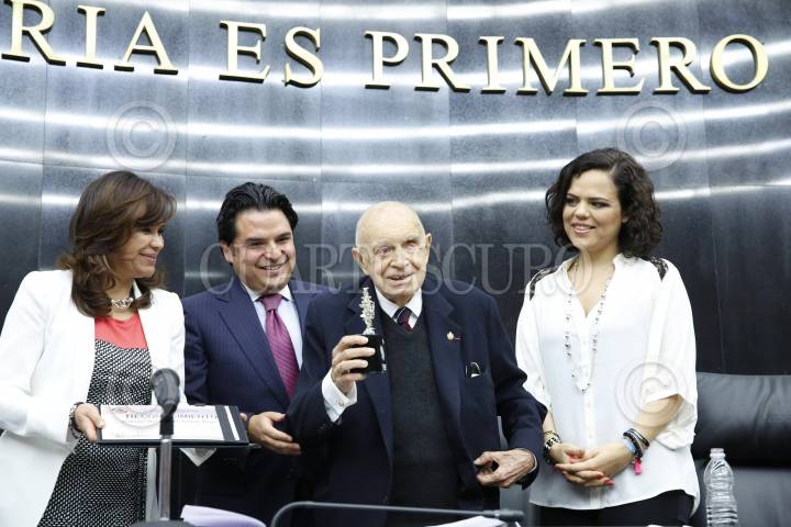 MÉXICO, D.F., 11ABRIL2015.- El poeta y ensayista Ramón Xirau recibió un homenaje por parte de la Secretaría de Cultura del DF, el acto se realizó en el Monumento de la Ciudad. FOTO: MOISÉS PABLO /CUARTOSCURO.COM