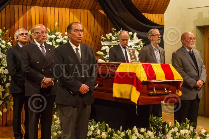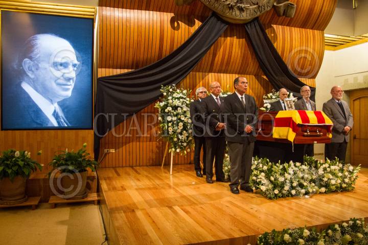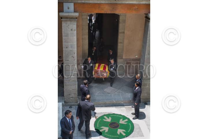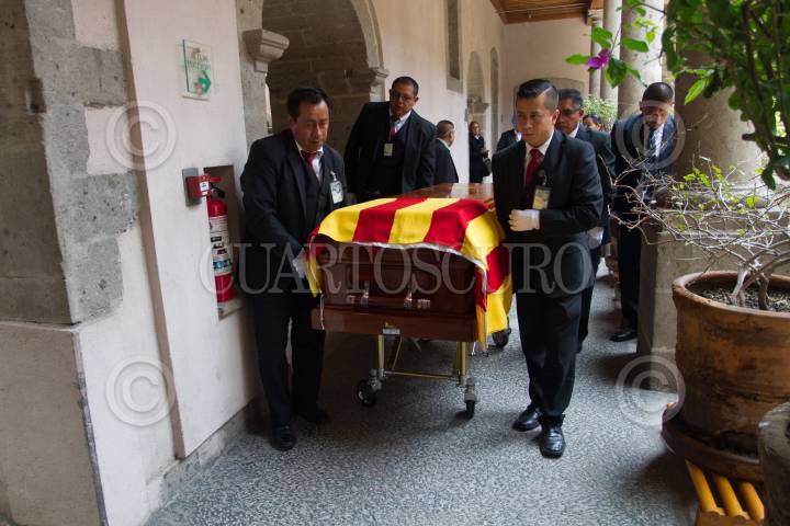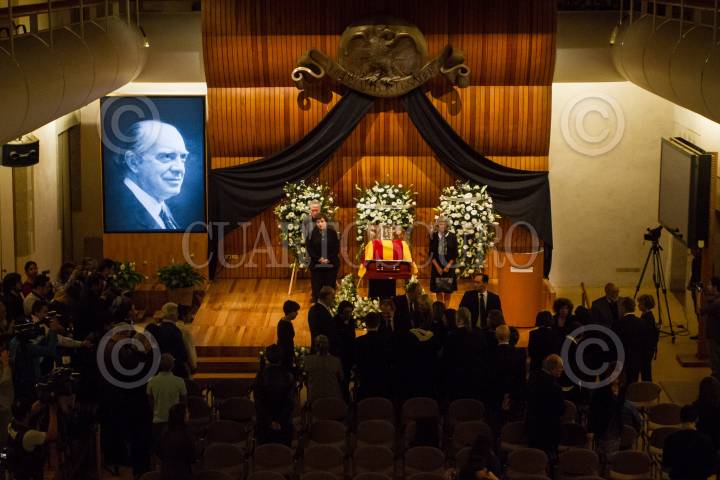 CIUDAD DE MÉXICO, 28JULIO2017.- Vicente Quirarte, Enrique Krauze, Bolivar Zapata, y Matos Moctezuma montan una guardia de honor en el homenaje de cuerpo presente al poeta español Ramón Xirau, recién fallecido a la edad de 93 años el pasado miércoles. FOTO: ISAAC ESQUIVEL /CUARTOSCURO.COM