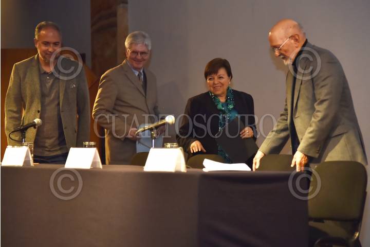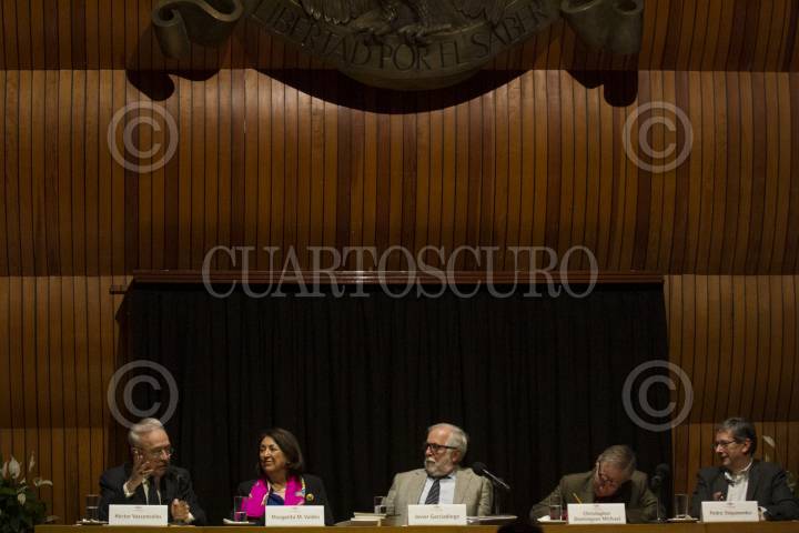 CIUDAD DE MÉXICO, 25SEPTIEMBRE2018.- Héctor Vasconcelos, Margarita M. Valdés, Javier Garciadiego, Christopher Domínguez Michael, y Pedro Stepanenko, durante un homenaje al poeta y escritor Ramón Xirau, realizado en el Colegio Nacional. FOTO: MOISÉS PABLO /CUARTOSCURO.COM