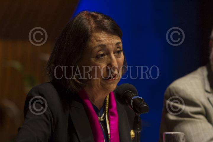 CIUDAD DE MÉXICO, 25SEPTIEMBRE2018.- Margarita M. Valdés durante un homenaje al poeta y escritor Ramón Xirau, realizado en el Colegio Nacional. FOTO: MOISÉS PABLO /CUARTOSCURO.COM