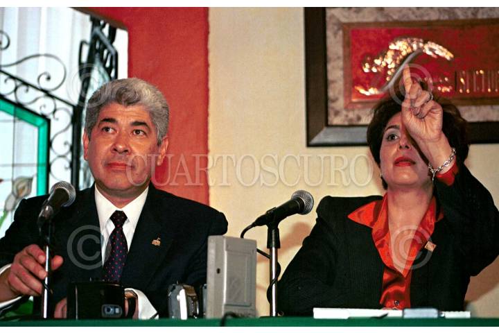Francisco Ramírez Acuña, gobernador de Jalisco, y Carlos Medina Plascencia, coordinador del Proyecto Electoral del PAN 2003, durante la reunión del Consejo Político Nacional de Acción Nacional. En donde Plascencia pidio mayor apertura y disposición al secretario de Hacienda, Francisco Gil Díaz. FOTO: Alberto Valdéz/CUARTOSCURO.COM