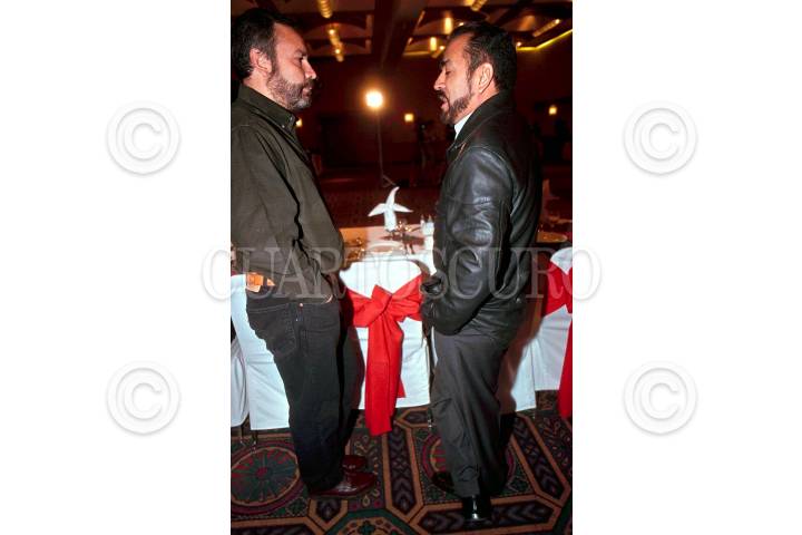 Alfonso Ramírez Cuellar conversa con Francisco Hernández Juárez, momentos antes de dar inicio el desayuno que organizó la Unión Nacional de Trabajadores. FOTO: Victoria Valtierra/CUARTOSCURO.COM