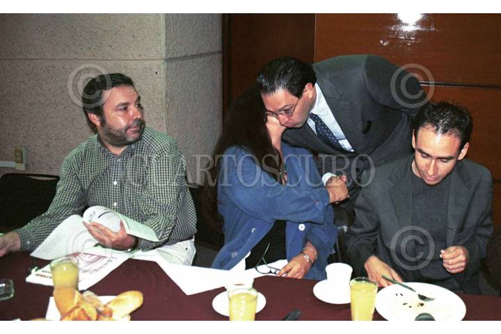 Javier Usaviaga, secretario de Agricultura, Guadalupe Ramírez senadora, Luis Ernesto Derbez secretario de Economia, Alfonso Ramírez Cuellar y Margarito Montes, durante la reunión que tuvo como objetivo llegar a un acuerdo para que no se vean afectados los productores con la desgravación arancelaria de productos del campo, a partir del 1 de enero de 2003. FOTO: Eunice Adorno/CUARTOSCURO.COM