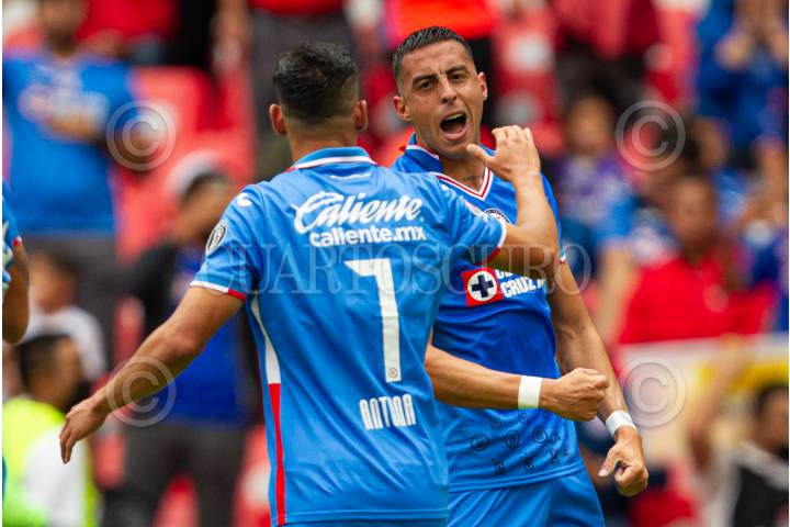 Festejo de gol de Ramiro Funes durante el partido de fútbol Cruz Azul vs Toluca correspondiente a la jornada 8 del Torneo Apertura 2022 de Liga BBVA MX, en el estadio Azteca.