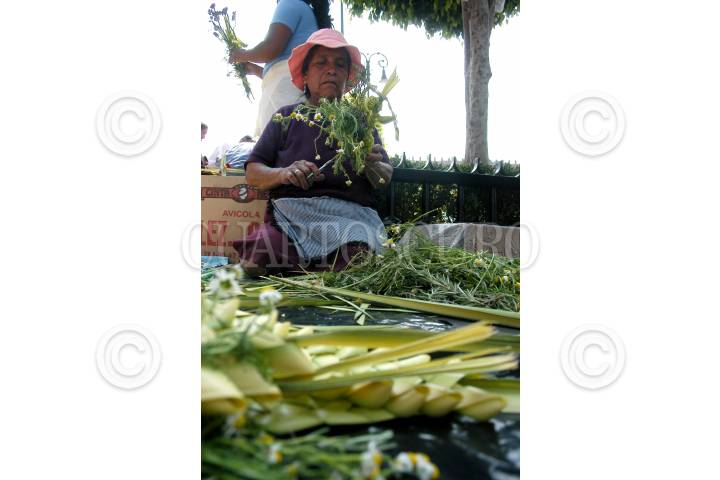 MÉXICO D.F. 01ABRIL2007.-Una señora elavora ramos de palma para los asitentes a misa de domingo de ramos, con lo cual da inicio la semana mayor en la catedral metropolitana. FOTO: GUILLERMO PEREA/CUARTOSCURO.COM