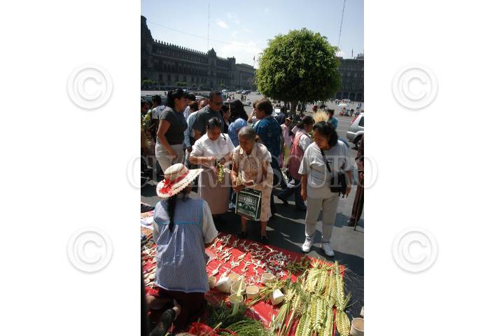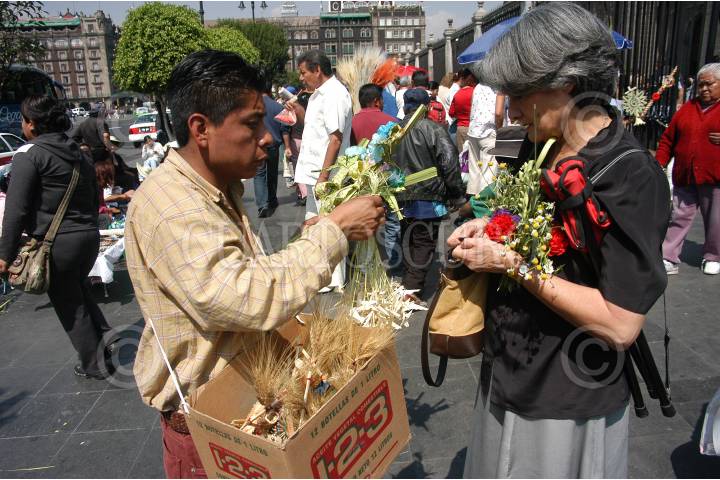 MÉXICO D.F. 01ABRIL2007.-Una señora compra sus ramos de palma antes de acudir a misa de domingo de ramos, con lo cual da inicio la semana mayor en la catedral metropolitana. FOTO: GUILLERMO PEREA/CUARTOSCURO.COM