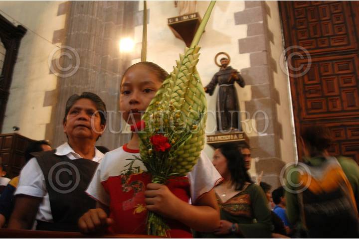MÉXICO D.F. 01ABRIL2007.-Se realizo la misa de domingos de ramos con lo cual da inicio la semana mayor, esto en la catedral metropolitana. Una niña porta un ramo de palma durante la misa. FOTO: GUILLERMO PEREA/CUARTOSCURO.COM