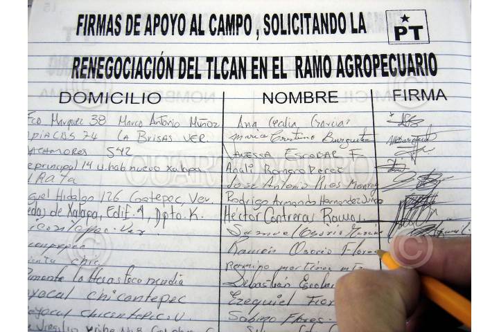 XALAPA, VERACRUZ 08ENERO2007.- Este día el partido del trabajo instaló un módulo en el parque juarez para recaudar Firmas de apoyo al campo, solicitando la renegociación del TLC en el ramo agropecuario, según dice el documento al que varios ciudadanos pasaban a firmar. FOTO: JORGE VALDÉS/CUARTOSCURO.COM