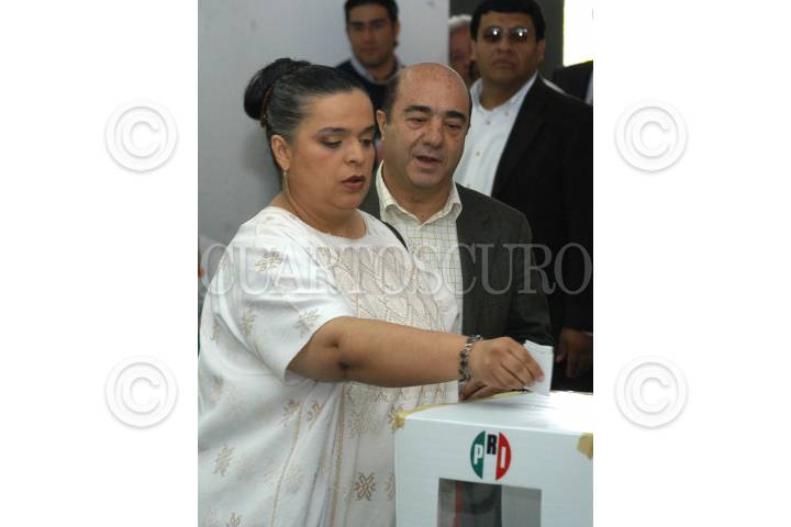 MÉXICO D.F. 18FEBRERO2007.- Beatriz Paredes Rangel, acompañada del senador Jesús Murillo Caram, durante la emisión de su voto para las elecciones de la presidencia del partido, esto en las intalaciones del CEN PRI. FOTO: GUILLERMO PEREA /CUARTOSCURO.COM