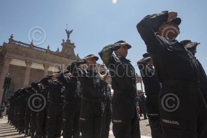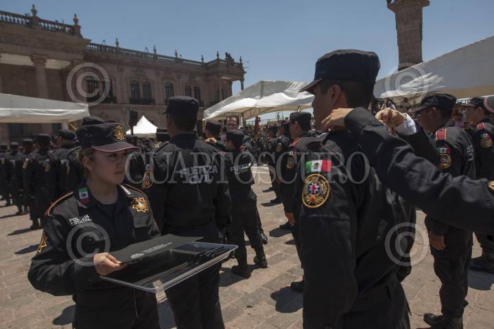 MONTERREY, NUEVO LEÓN, 03JUNIO2013.- El gobierno del estado realizó una ceremonia de imposición de grados en donde se condecoró a 250 de 2 mil aspirantes policías de fuerza civil quienes ascendieron de rango. FOTO: GABRIELA PÉREZ MONTIEL / CUARTOSCURO.COM