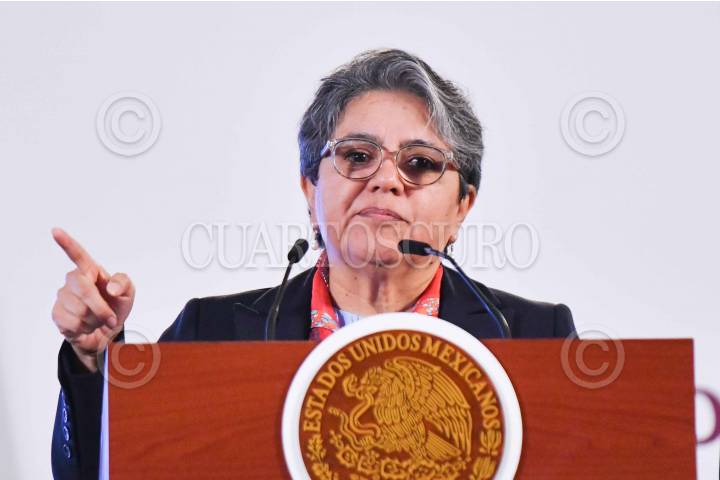CIUDAD DE MÉXICO, 31ENERO2025.- Raquel Buenrostro, secretaria de Anticorrupción y Buen Gobierno, durante la conferencia Mañanera del Pueblo desde Palacio Nacional. FOTO: PRESIDENCIA/CUARTOSCURO.COM