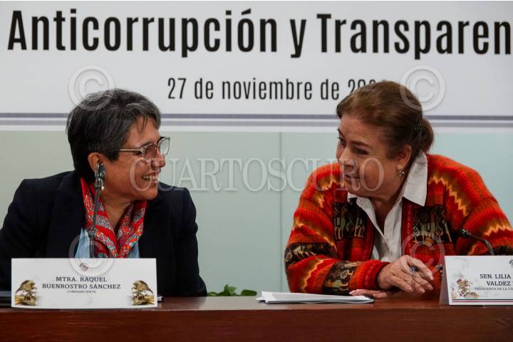 CIUDAD DE MÉXICO, 27NOVIEMBRE2024.- Raquel Buenrostro y Lilia Margarita Valdez, presidenta de la Comisión de Gobernación, durante la comparecencia de Buenrostro Sánchez ante las Comisiones Reunidas de Gobernación y Anticorrupción y Transparencia del Senado de la República para su ratificación como secretaria de la Función Pública (SFP) del gobierno federal. FOTO: GALO CAÑAS/CUARTOSCURO.COM