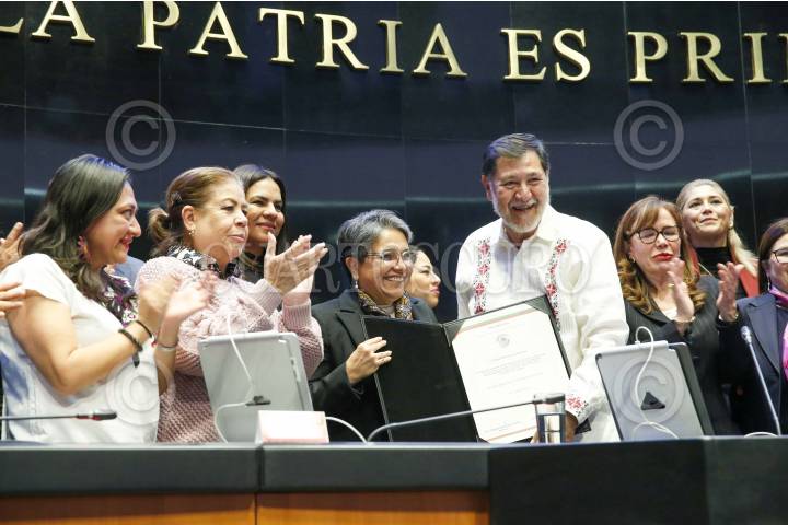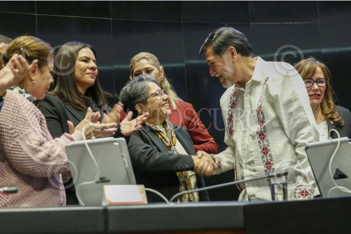 CIUDAD DE MÉXICO, 28NOVIEMBRE2024.- Raquel Buenrostro fue ratificada como titular del Sistema de Administración Tributaria (SAT) por el pleno del Senado. La funcionaria juro al cargo durante la sesión y le fue entregada su constancia por la mesa directiva, encabezada por Gerardo Fernández Noroña. FOTO: CUARTOSCURO.COM