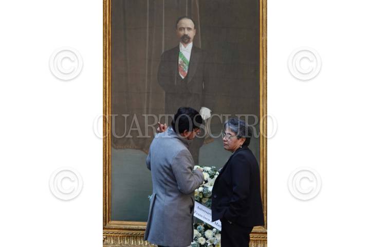 CIUDAD DE MÉXICO, 26FEBRERO2025.- Jesús Ramírez, Coordinador de Asesores de la Presidenta de la República, y Raquel Buenrostro, titular de la Secretaria de la Función Pública, conversaron durante el 112 Aniversario de Francisco I Madero realizado en el Patio de Honor en Palacio Nacional. FOTO: GRACIELA LÓPEZ/CUARTOSCURO.COM