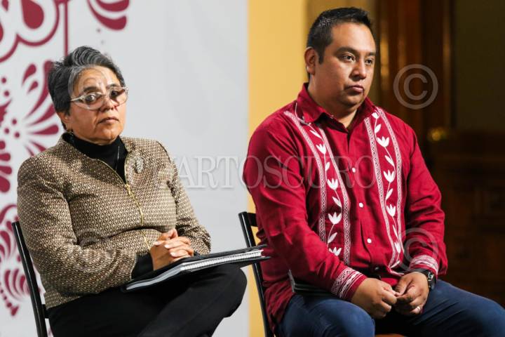 CIUDAD DE MÉXICO, 30JULIO2024.- Raquel Buenrostro, secretaria de Economía, y Alejandra Frausto, secretaria de Cultura, acompañadas de artesanas y artesanos durante la presentación del Informe de la Encuesta de resultados económicos del programa ORIGINAL en la Casa Miguel Alemán, del Complejo Cultural Los Pinos. FOTO: GRACIELA LÓPEZ/CUARTOSCURO.COM