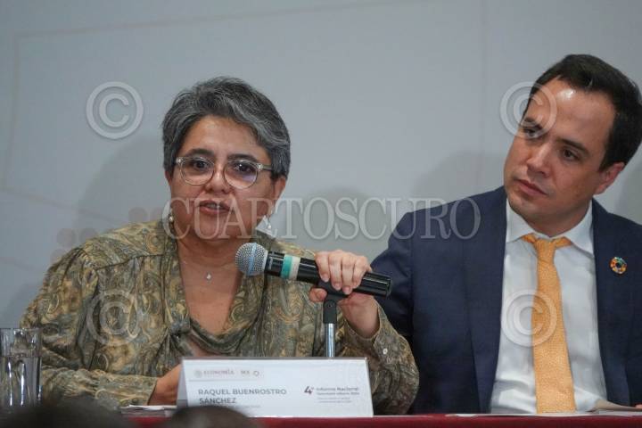CIUDAD DE MÉXICO, 11JULIO2024.- Raquel Buenrostro, secretario de Economía; encabezó el 4 Informe Nacional Voluntario México -avance colectivo hacia el cumplimiento de los Objetivos de Desarrollo Sostenible-, esto en la Secretaría de Economía. FOTO: MOISÉS PABLO/CUARTOSCURO.COM