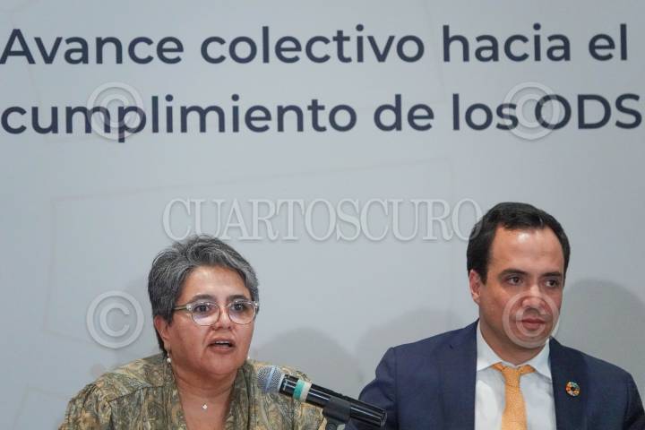 CIUDAD DE MÉXICO, 11JULIO2024.- Raquel Buenrostro, secretario de Economía; y Alejandro Encinas Nájera, Subsecretario de Comercio Exterior de la Secretaría de Economía; encabezaron el 4 Informe Nacional Voluntario México -avance colectivo hacia el cumplimiento de los Objetivos de Desarrollo Sostenible-, esto en la Secretaría de Economía. FOTO: MOISÉS PABLO/CUARTOSCURO.COM