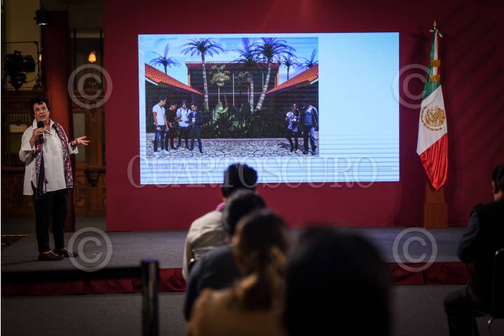 CIUDAD DE MÉXICO, 23OCTUBRE2024.- Raquel Sosa Elízaga, directora general de las Universidades para el Bienestar "Benito Juárez", acompañada de Claudia Sheinbaum, presidenta constitucional de los Estados Unidos Mexicanos, durante su participación en la conferencia "La Mañanera del Pueblo", realizada en el Salón de Tesorería en Palacio Nacional. FOTO: GRACIELA LÓPEZ/CUARTOSCURO.COM