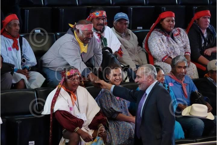 CIUDAD DE MÉXICO, 05DICIEMBRE2024.- El senador Adán Augusto saludó a mujeres y hombres rarámuri invitados en la Sesión Ordinaria en materia de la Reforma al Poder Judicial. FOTO: GRACIELA LÓPEZ/CUARTOSCURO.COM
