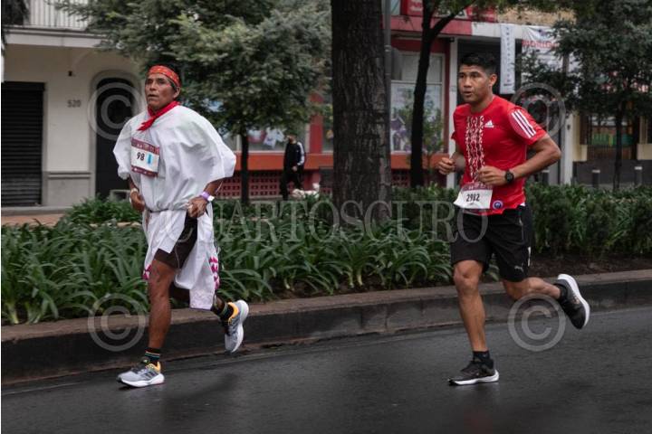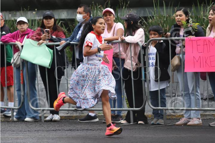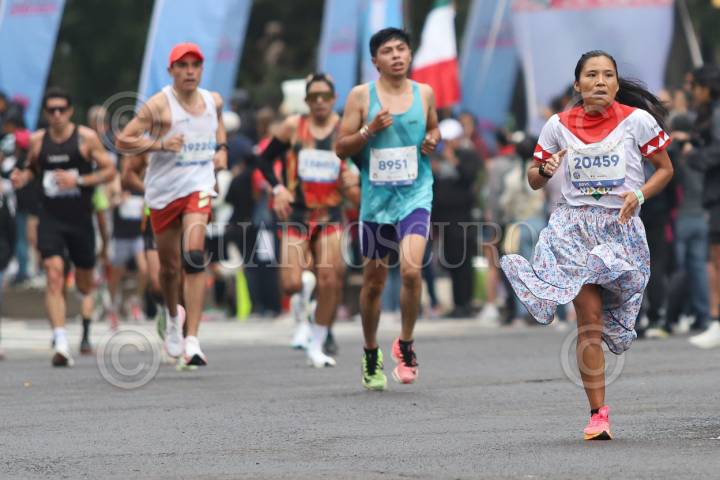 CIUDAD DE MÉXICO, 13JULIO2025.- Una corredora Rarámuri participa en el Medio Maratón 2025. FOTO: DANIEL AUGUSTO/CUARTOSCURO.COM