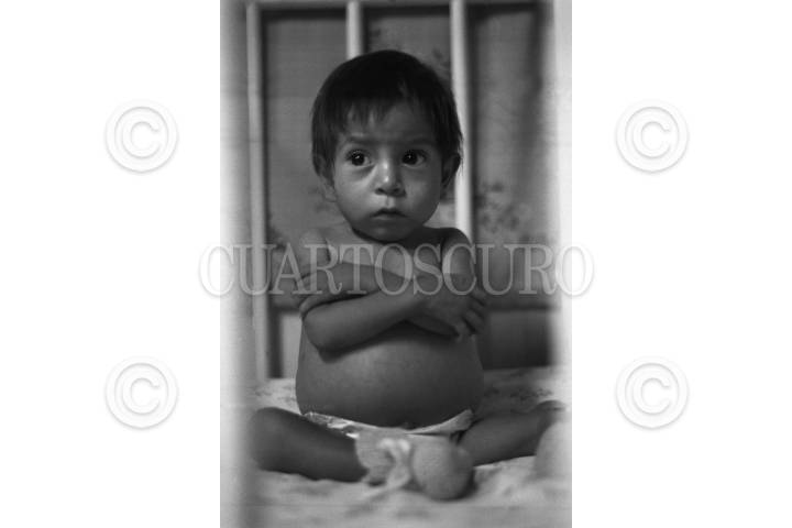 GUACHOCHI, CHIHUAHUA, 17ENERO2012.- Niño indígena Rarámuri sufre desnutrición en hospital de las comunidades Tarahumaras. Desde el fin de semana, información en diversos medios difundieron la noticia de que en la sierra Tarahumara, indígenas Rarámuris se habían suicidado a causa de la hambruna que ha provocado la sequía en sus comunidades. Hasta el momento las autoridades estatales y federales han desmentido la noticia y solo informan que es una sitiación de emergencia a causa de la peor sequía en los últimos 70 años. En la imagen, fotorreportaje de Octubre de 1994 que muestra las condiciones en que el pueblo Rarámuri a vivido siempre, en condiciones de marginación y pobreza, en donde todos los programas de asistencia social han sido un fracaso. FOTO: PEDRO VALTIERRA/ARCHIVO/CUARTOSCURO.COM