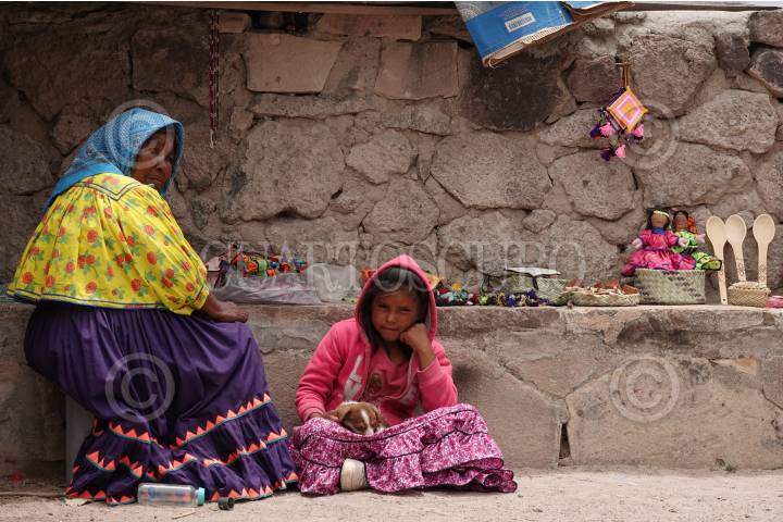 Mujeres y niñas rarámuri conversan y ríen en Cerocahui, en el municipio de Urique de la Sierra Tarahumara