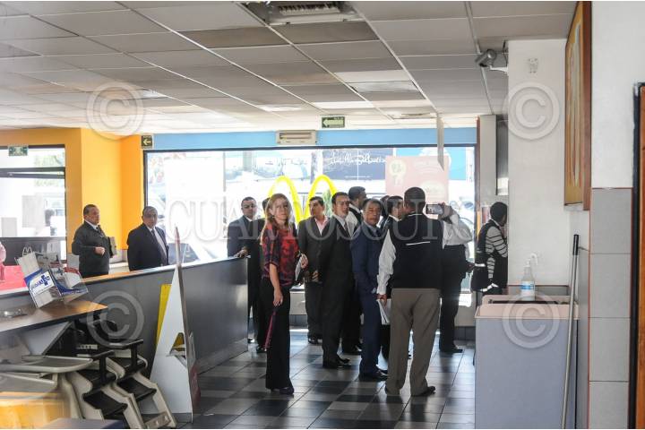 TLANEPANTLA, EDOMEX, 10NOVIEMBRE2015.- Peritos de la Procuraduría General de Justicia del Estado de México (PGJEM) y la Comisión para la Protección contra Riesgos Sanitarios del Estado de México (Coprisem) realizaron un peritaje a la sucursal del McDonald’s en Tlalnepantla luego de que un cliente denunciara que encontró la cabeza de una rata en una hamburguesa. FOTO: TONATIU CRUZ /CUARTOSCURO.COM