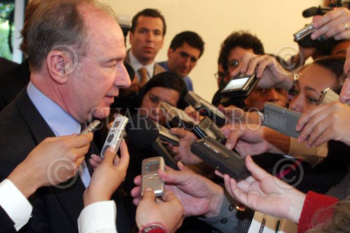 MEXICO, D.F. 08NOVIEMBRE2004.- Rodrigo de Rato, director gerente de Fondo Monetario Internacional (FMI), durante una conferencia de prensa con los medios de comunicación realizada en la residencia oficial de los Pinos. FOTO: Moisés Pablo/CUARTOSCURO.COM