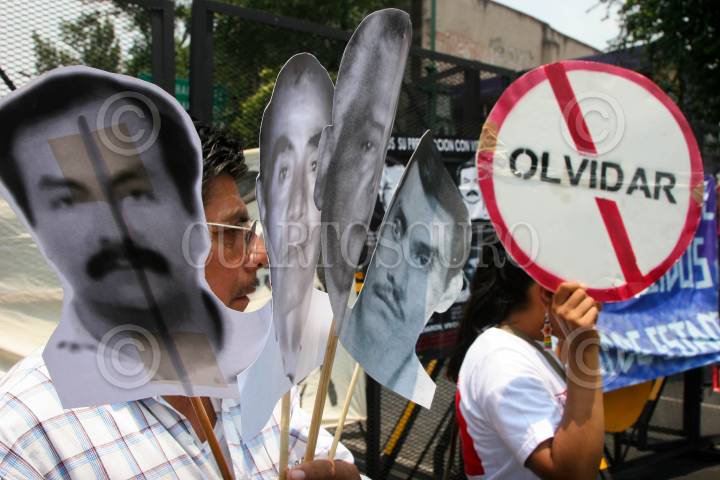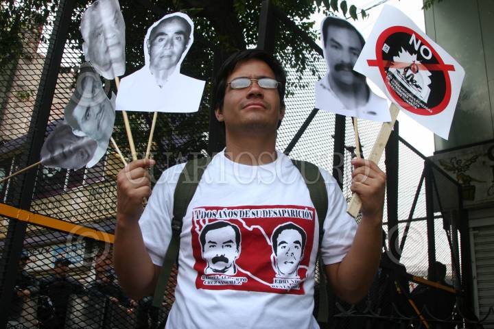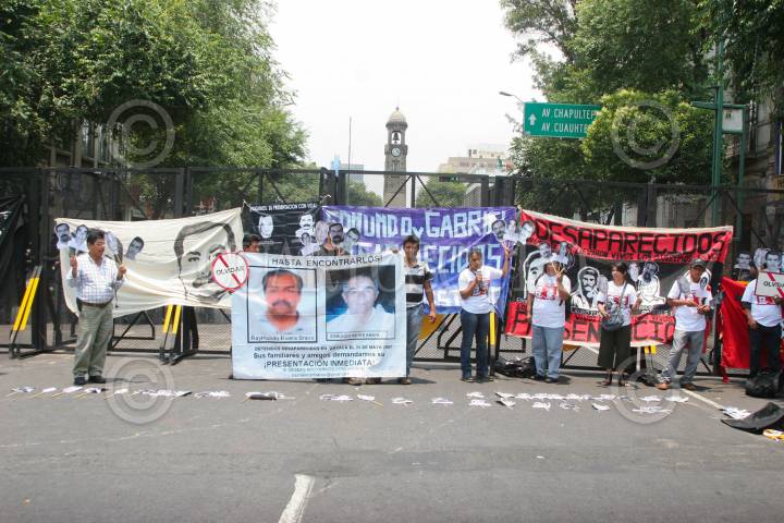 MÉXICO, D.F., 25MAYO2009.- Integrantes del Comité Nacional por la presentación de las y los desaparecidos, se manifestaron a las afueras de la Secretaria de Gobernación para pedir la liberación de Raymundo Rivera Bravo, Edmundo Reyes Maya, Francisco Paredes Ruiz y Alberto Cruz Sanchez quienes son presos políticos pertenecientes al (EPR) Ejercito Popular Revolucionario. FOTO: RICARDO CASTELAN/CUARTOSCURO.COM