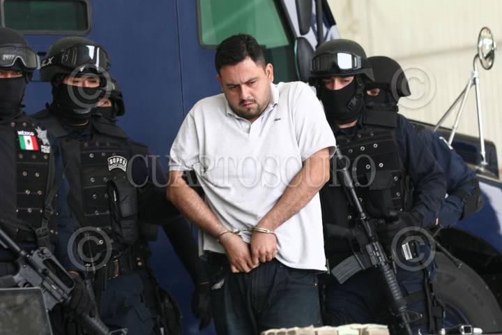 MÉXICO, D.F, 12ENERO2010.- Elementos de la Secretaria de Seguridad Pública, PGR y del Ejercito Mexicano presentaron ante los medios de comunicación a Eduardo Teodoro García Simental alias "El Teo" junto con Diego Raymundo Guerrero Gómez. La captura fue realizada en la colonia Las Flores en la Paz Baja California. Garcia Simental era uno de los sujetos más buscados por los gobiernos de México y Estados Unidos FOTO: SAÚL LÓPEZ/CUARTOSCURO.COM