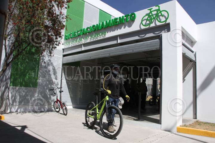 Usuario, saliendo de las inmediaciones del biciestacionamiento en Tláhuac. FOTO: ROGELIO MORALES /CUARTOSCURO.COM