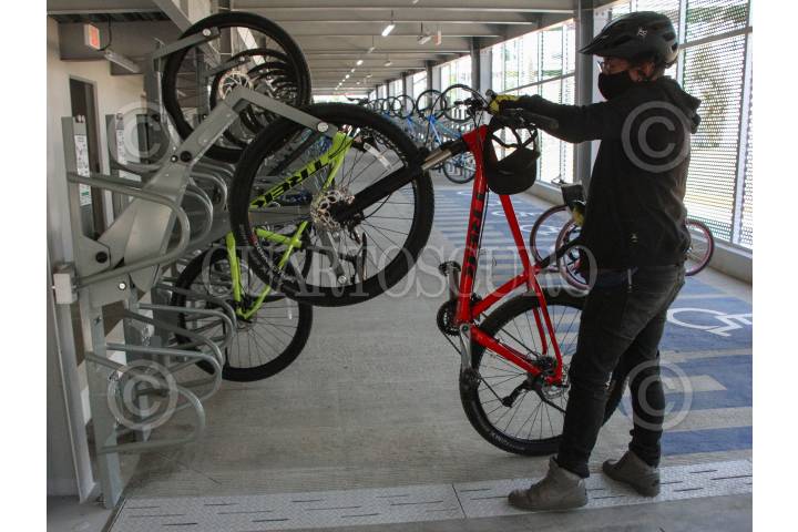 Usuario en las inmediaciones del biciestacionamiento, en la estación Tláhuac de la línea 12 del metro. FOTO: ROGELIO MORALES /CUARTOSCURO.COM