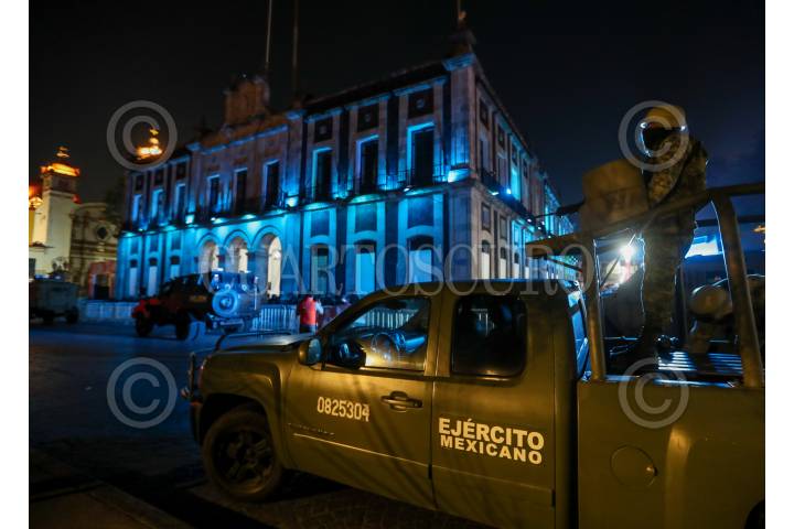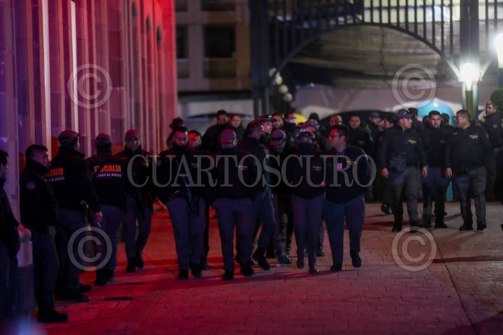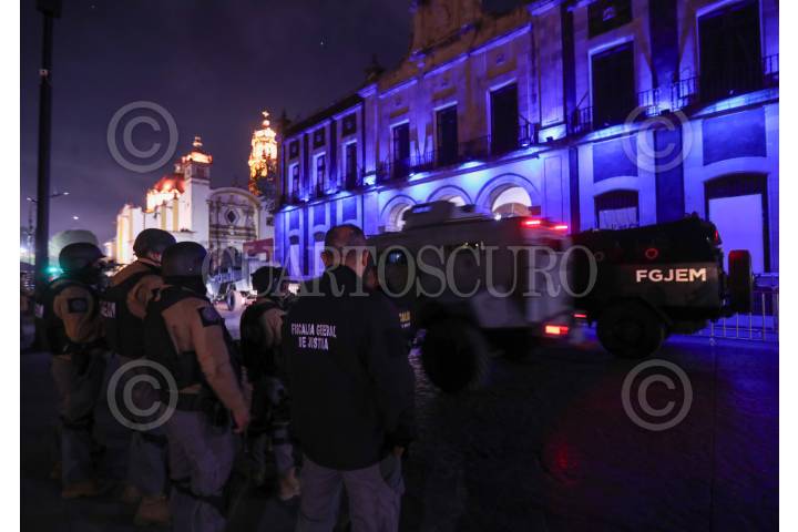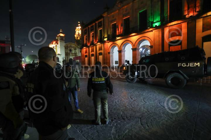 TOLUCA, ESTADO DE MÉXICO, 24NOVIEMBRE2023.- Elementos de la Fiscalía General de Justicia del Estado de México, Ejército y Guardia Nacional realizan un cateo al interior del Ayuntamiento de Toluca, así como en otros inmuebles en cumplimiento de una orden de aprehensión en contra del alcalde Raymundo Martínez Carbajal, por su presunta participación en el delito de secuestro exprés; en días pasados su ex esposa lo denuncia en redes sociales por diversos delitos. FOTO: CRISANTA ESPINOSA AGUILAR /CUARTOSCURO.COM