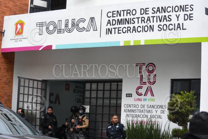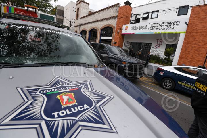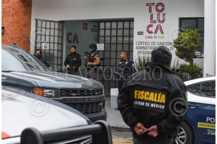 TOLUCA, ESTADO DE MÉXICO, 01DICIEMBRE2023.- Elementos de la Fiscalía General de Justicia del Estado de México (FGJEM) realizó diligencias en el Centro de Sanciones Administrativas y de Integración Social de Toluca y el DIF municipal como parte de la investigación en contra de Raymundo “N” alcalde de Toluca y otros 6 funcionarios del Ayuntamiento de Toluca, quienes se encuentran prófugos de la ley. FOTO: CRISANTA ESPINOSA AGUILAR /CUARTOSCURO.COM