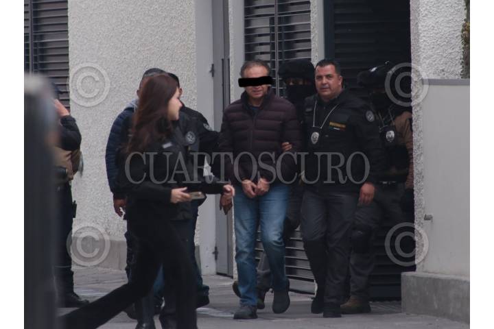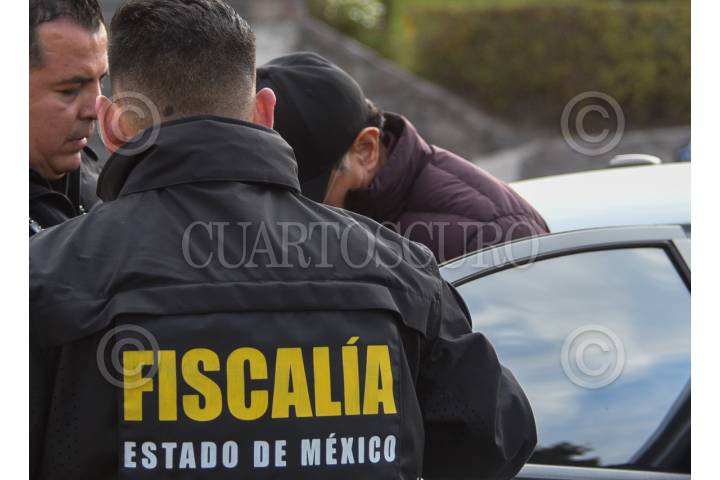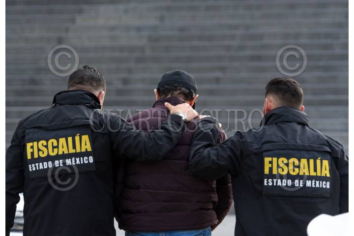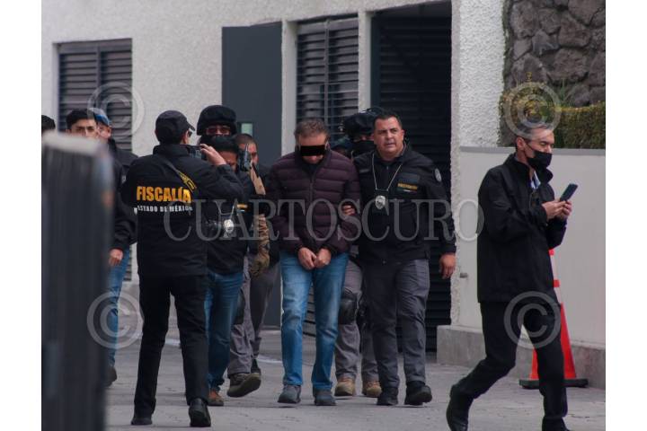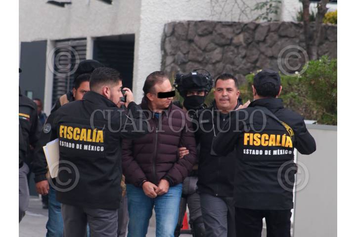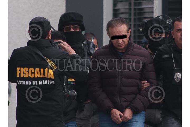 TOLUCA, ESTADO DE MÉXICO, 18ENERO2024.- Elementos de la FGJEM cumplimentaron una orden de aprehensión en contra de Raymundo “N” ex alcalde de Toluca, quien fuera detenido en la CDMX la madrugada de este jueves después de permanecer prófugo 55 días; arribó a las instalaciones de la Fiscalía mexiquense y posteriormente será trasladado al Centro de Prevención y Readaptación Social Santiaguito en Almoloya de Juárez. FOTO: CRISANTA ESPINOSA AGUILAR /CUARTOSCURO.COM
