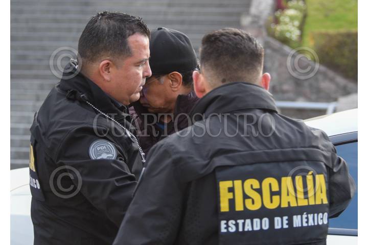 TOLUCA, ESTADO DE MÉXICO, 18ENERO2024.- Elementos de la FGJEM cumplimentaron una orden de aprehensión en contra de Raymundo “N” ex alcalde de Toluca, quien fuera detenido en la CDMX la madrugada de este jueves después de permanecer prófugo 55 días; arribó a las instalaciones de la Fiscalía mexiquense y posteriormente fue trasladado al Centro de Prevención y Readaptación Social Santiaguito en Almoloya de Juárez. FOTO: CRISANTA ESPINOSA AGUILAR /CUARTOSCURO.COM